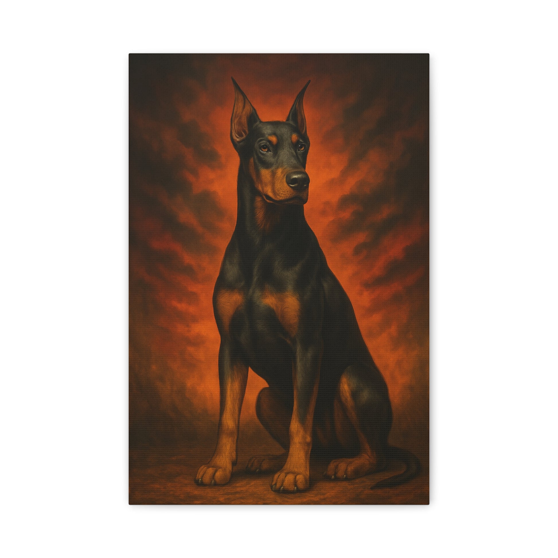 Bring raw power and elegance into your space with this striking Doberman canvas print. Featuring a hand-painted style with fiery tones in the background, this piece captures the strength, loyalty, and commanding presence of one of the most iconic breeds.